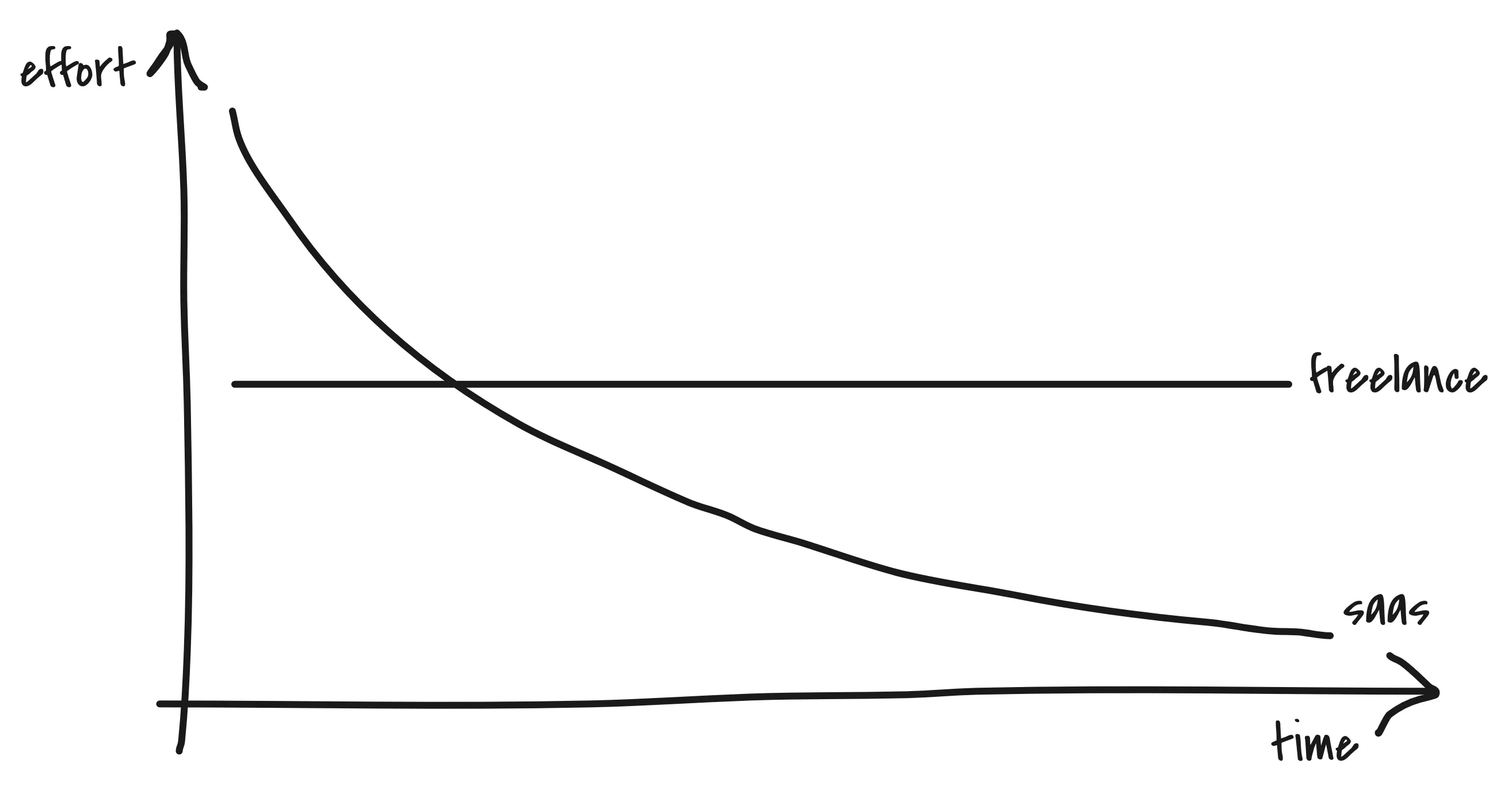 With freelancing, I’ll always have to put in a lot of work to earn the relatively same amount of money. Otherwise, with a SaaS, I’ll put a lot of effort upfront and relax later.